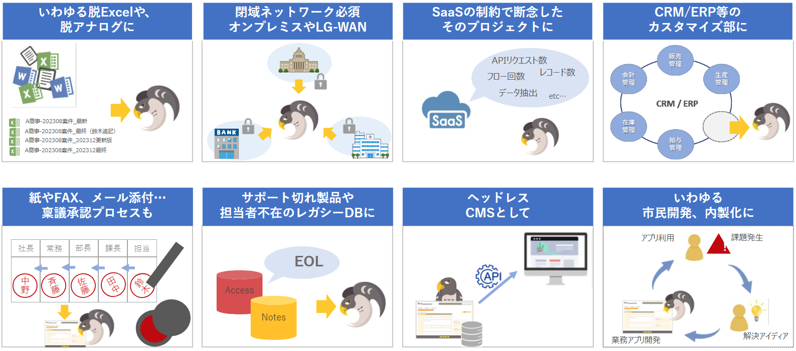 プリザンターはインプリム社が開発した国産のノーコード・ローコード開発ツールで顧客情報管理、商談管理、契約書管理、在庫管理などに使えるテンプレートが備わっています。これらをエクセルで管理していて、将来的に脱エクセルを目指している部門責任者様、企業様には特に最適な製品です。優れた汎用性と拡張性をもっているにもかかわらずオープンソースソフトウェアのため「すべての機能」を「無料」で利用可能という利点もあり、国内最大級のIT製品レビューサイト(ITreview)でも高評価を得ています。