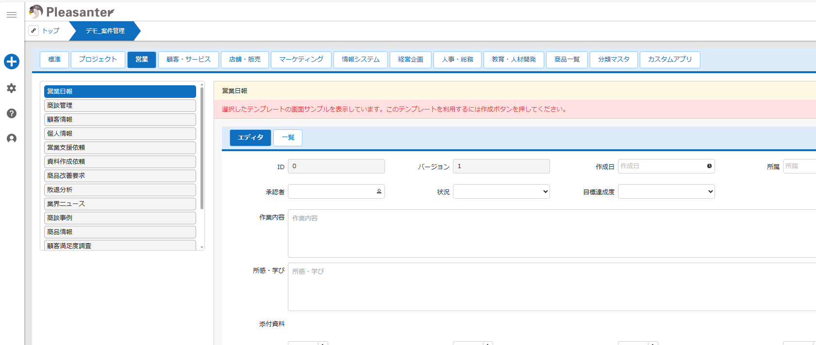 部署や部門、業務に合わせたテンプレートがデフォルトで用意されているのですぐに利用可能です。